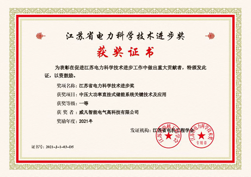 公司與中國工程院、清華大學(xué)合作成立專注于大功率電力電子研究的院士專家工作站,建有國家級“博士后科研工作站”、“電力電子工程技術(shù)研究中心”、“電力安全與優(yōu)化技術(shù)省級工程中心”,并成立了“威凡高科南京研究院”,專業(yè)從事電能質(zhì)量和儲能系統(tǒng)關(guān)鍵技術(shù)研究及新品研發(fā)。